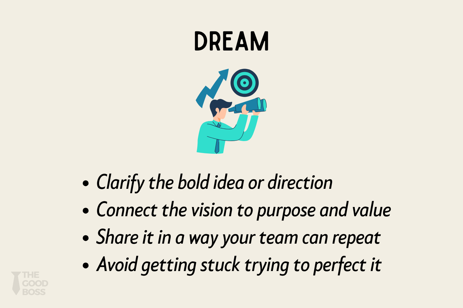 It’s a system to help leaders move through three critical phases: Dream → Drive → Do.