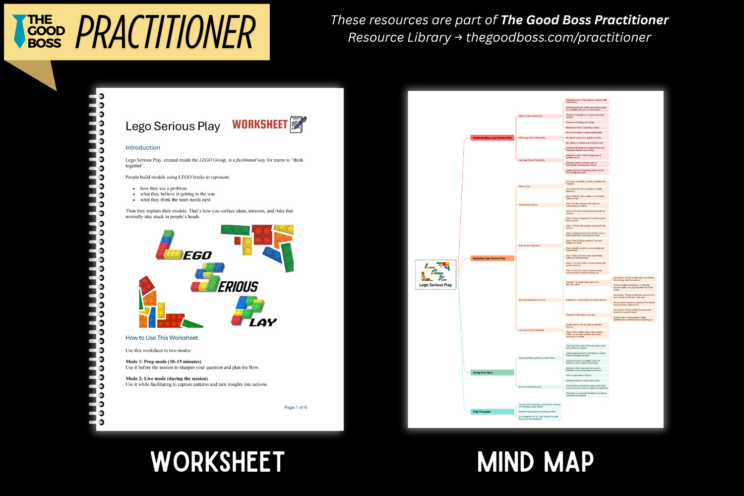 āš™ļø Practitioner Resources: This framework includes the Lego Serious Play Worksheet and the Lego Serious Play Mind-map.