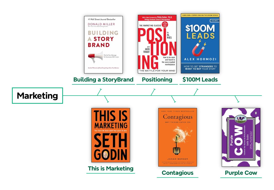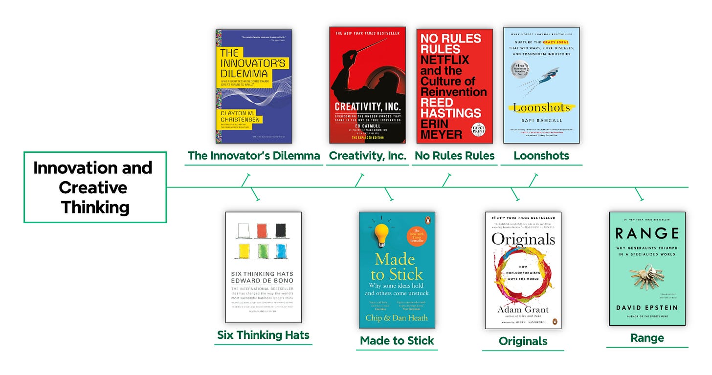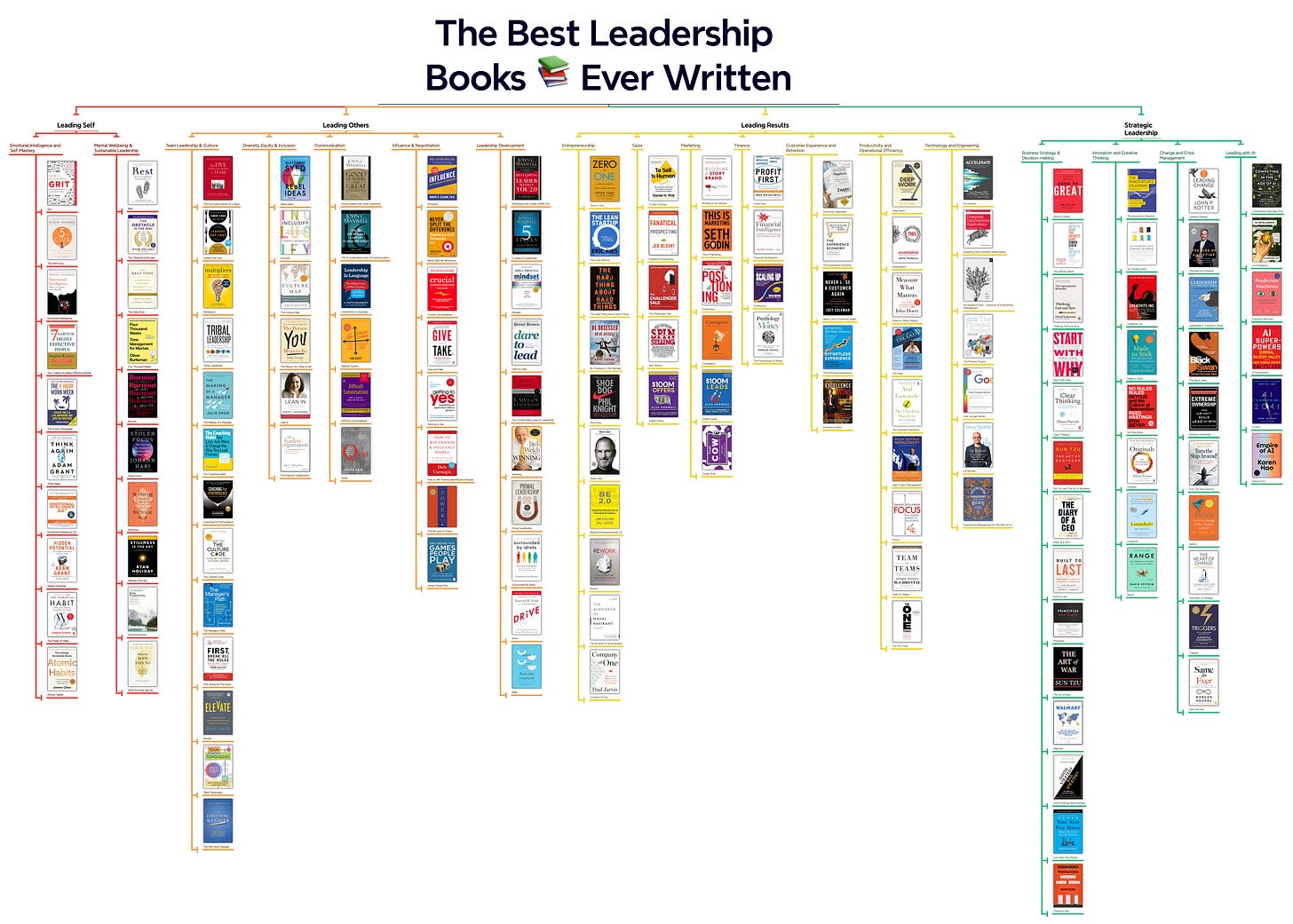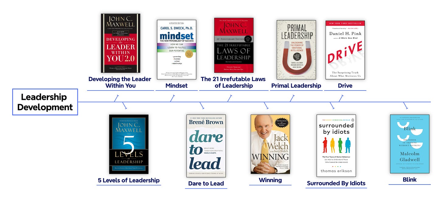 I turned these 147 leadership books into a visual mind-map and a clean, printable PDF poster. It shows all 18 disciplines in one place, so you can quickly spot the areas you want to grow in and pick your next book without overthinking it.