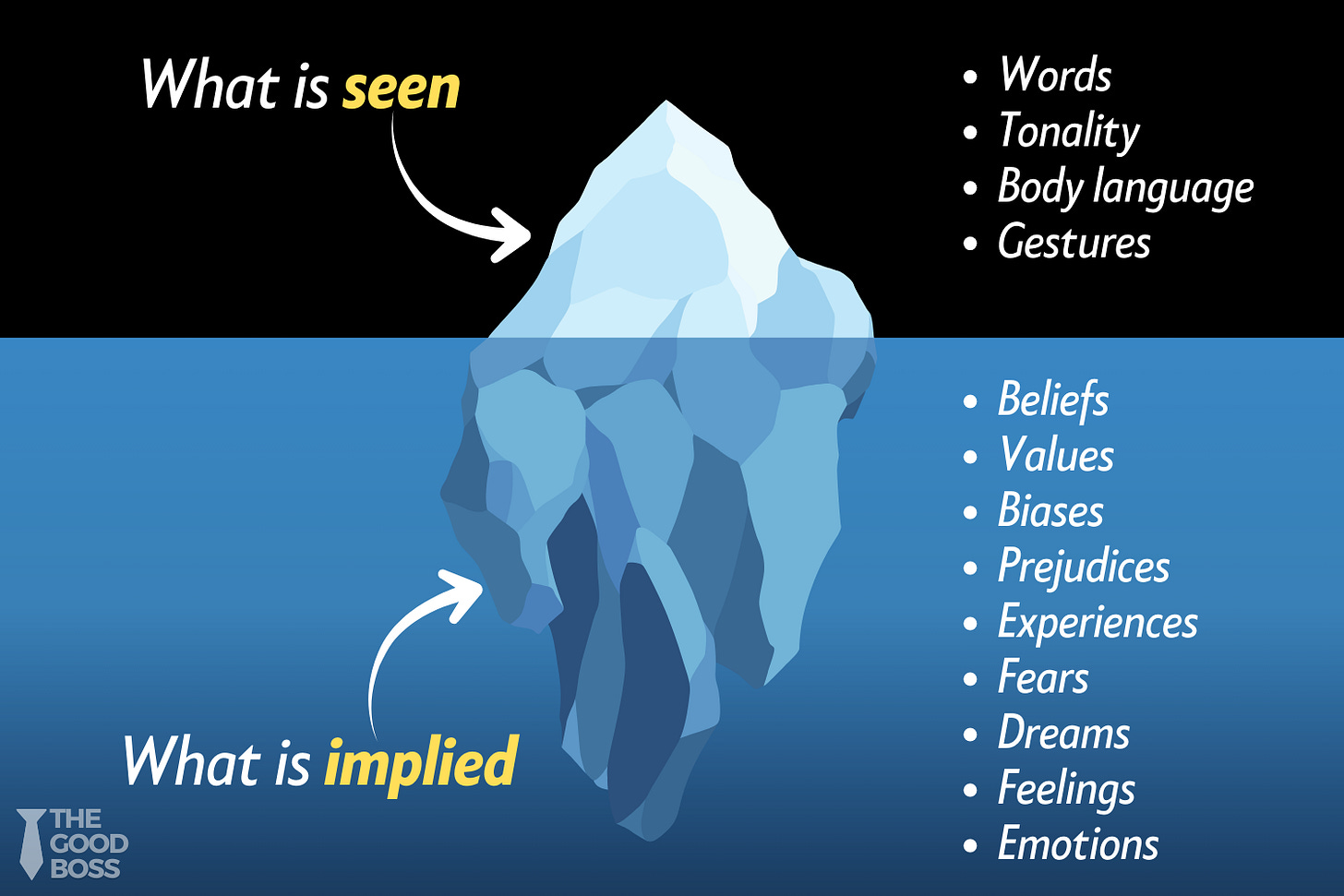 Only a small part should be visible on the surface, just like the tip of an iceberg. The real meaning lies beneath.