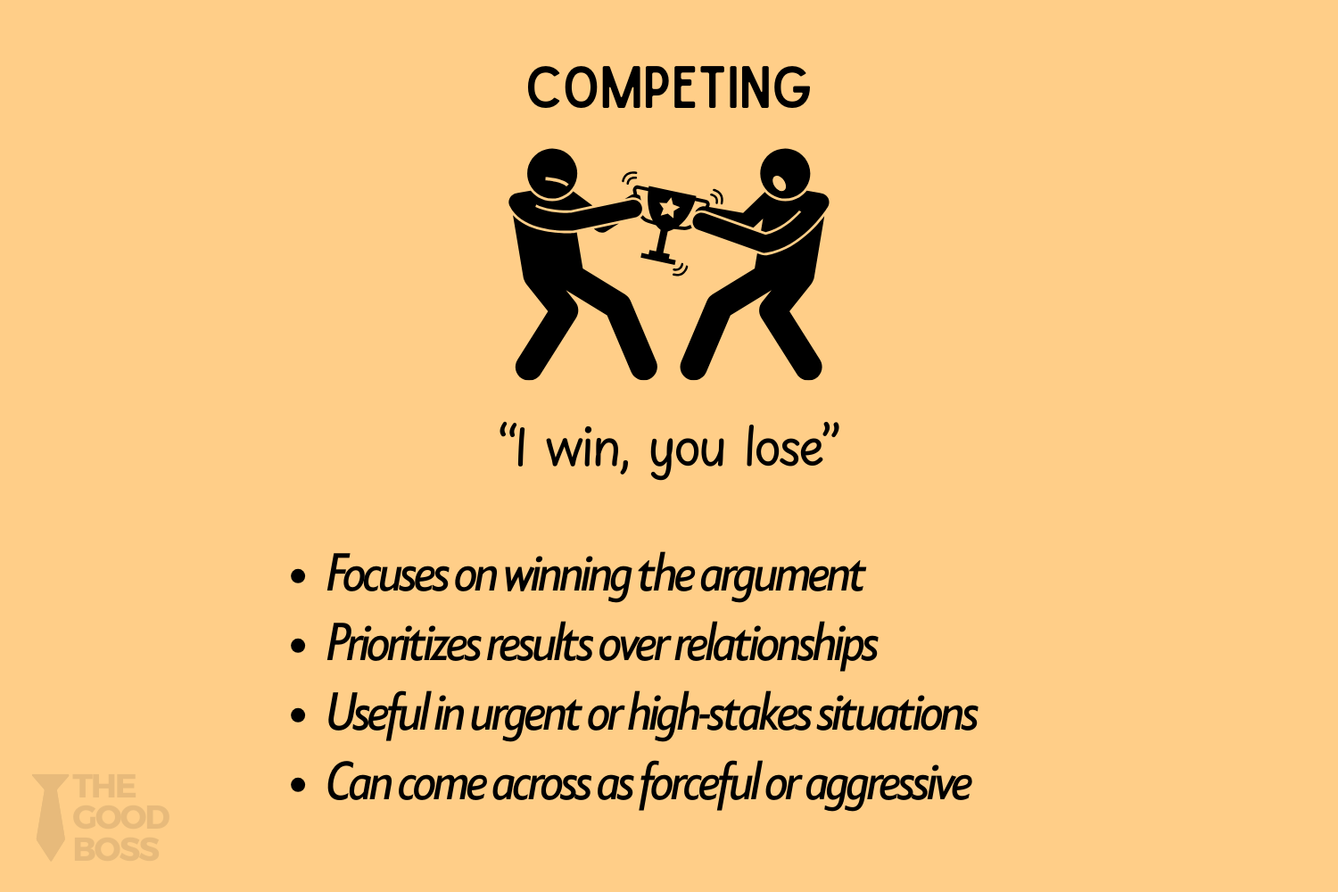 This is the “I win, you lose” style.