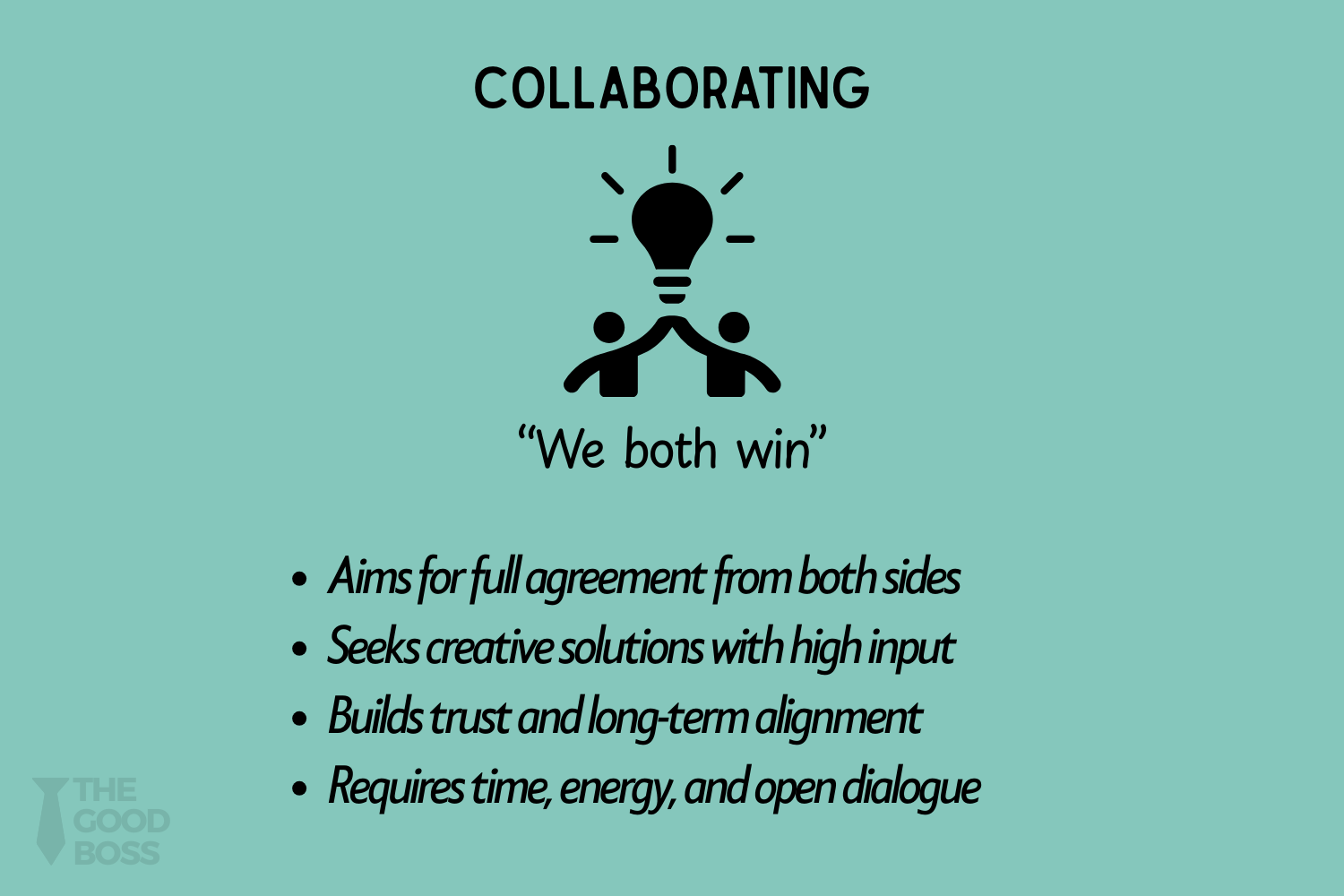 👉🏼 Use collaboration for high-stakes or recurring issues where alignment matters. Don't burn it on low-priority disagreements.